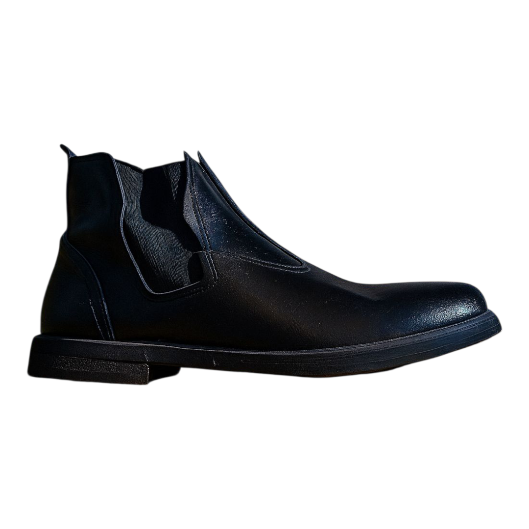 Feita em couro preto, a botina conta com solado exclusivo de pneu, proporcionando alta resistência e aderência. O estilo é fechado, sem cadarço, com elástico lateral para melhor encaixe. Produto robusto para atender necessidades de segurança laboral.