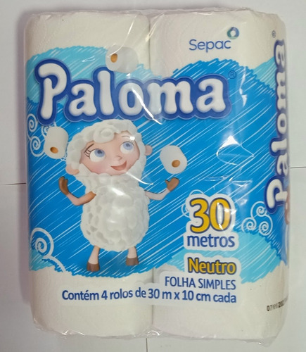 Papel higiênico Paloma rolo de 30 metros Folha simple, pacote com 4 rolos.