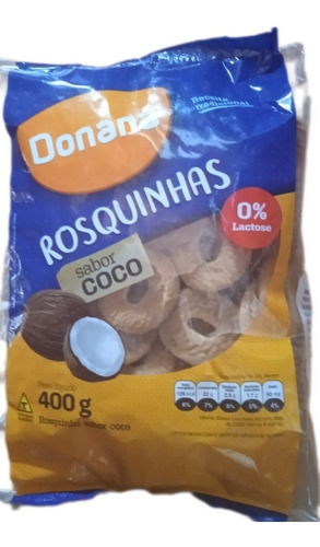 Rosquinha sabor coco Donana pacote de 400 gramas o de lactose.